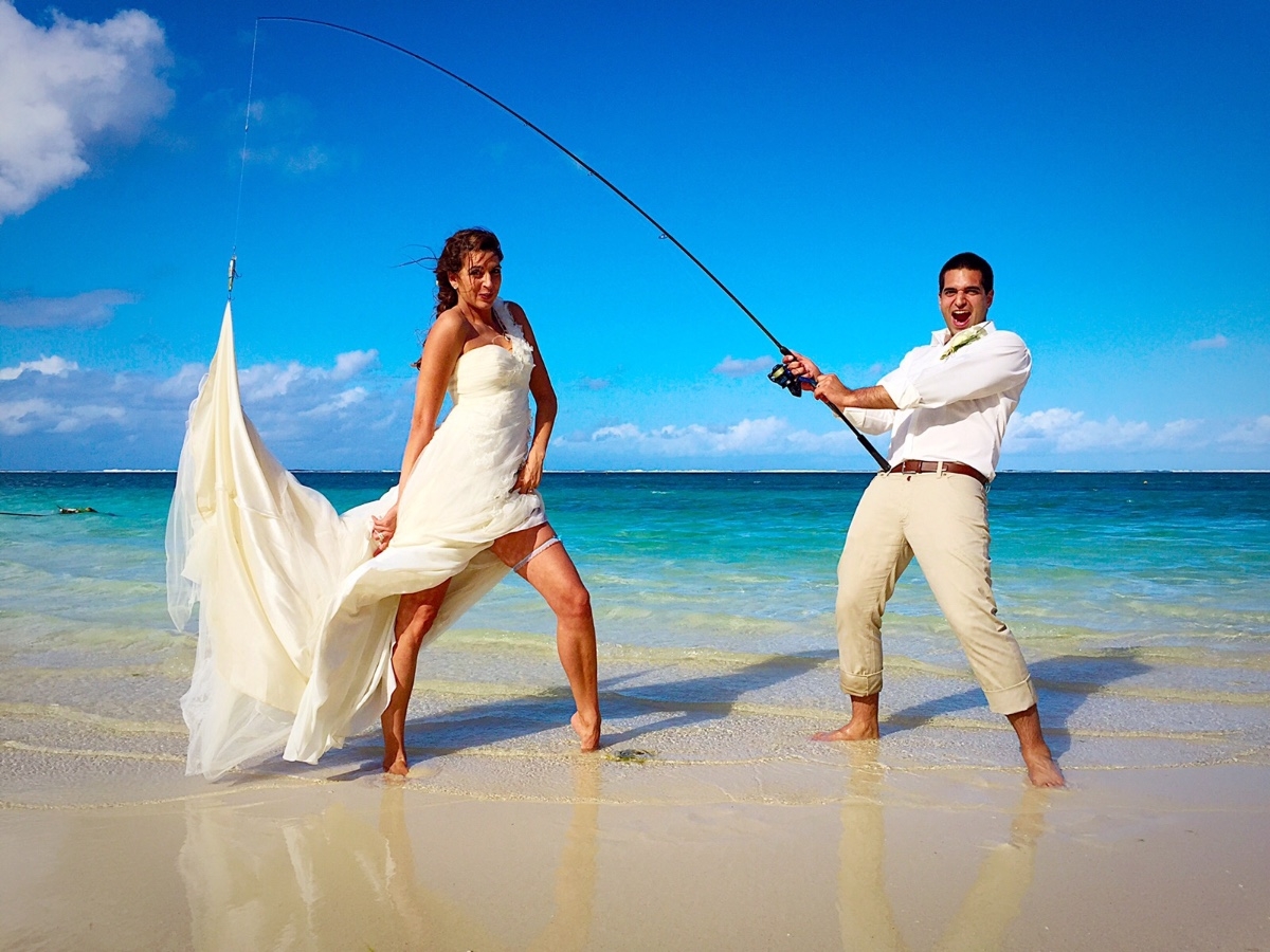 Na přání: svatební fotograf z hotelu: 310 € Victoria, 350 € Shandrani, Paradis, Dinarobin, 400 € Royal Palm